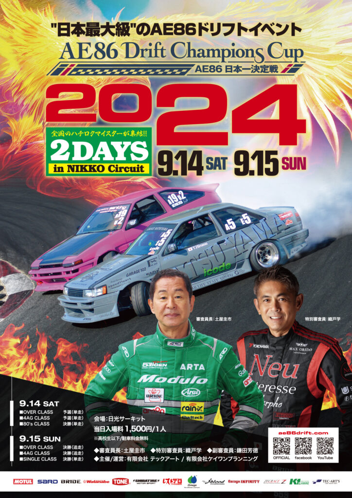 今年のAE86ドリフト日本一決定戦は、土屋圭市と織戸学がジャッジをする超豪華な大会です!