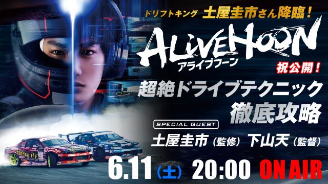 eスポーツドライバーの日本一の男が、リアルドリフトレースの頂点を目指すという胸熱レース映画『ALIVEHOON アライブフーン』が、6月10日よりいよいよ公開されます。その公開を記念して、CGゼロのトップレーサーたちの迫力ドライブシーンを映し出した本作『 ALIVEHOON アライブフーン』の企画から撮影の裏話、作品への想いなどを存分に語っていただくトーク番組の開催が決定!
